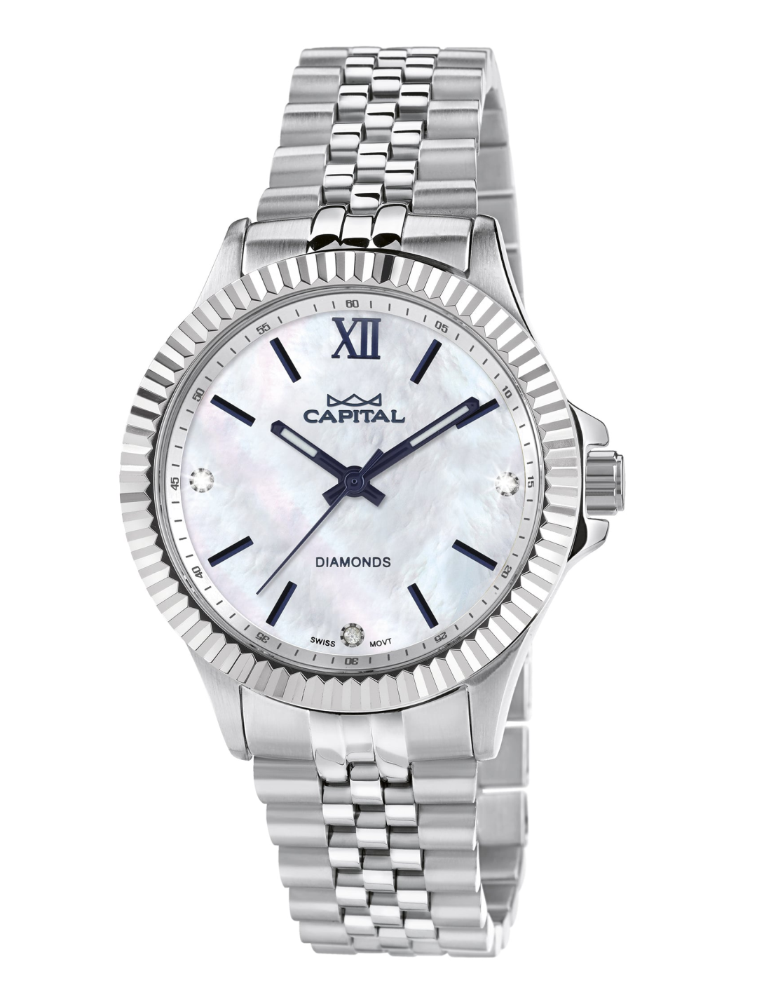 DIAL White dial in real mother of pearl with 3 real diamonds set