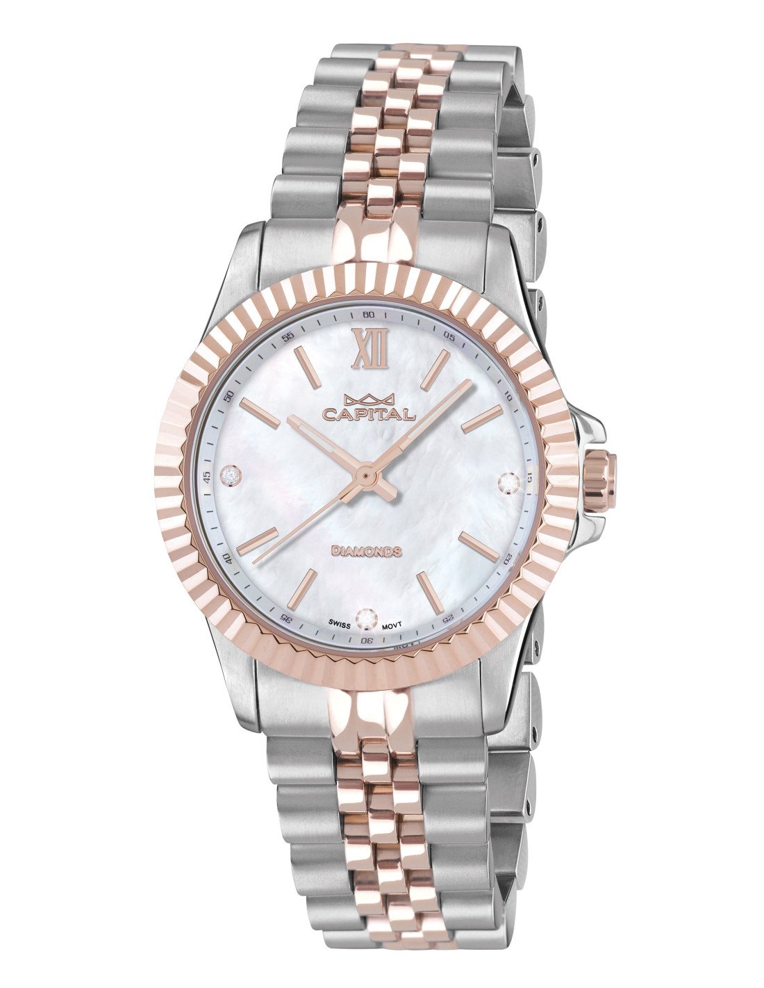 | DIAL | White dial in real mother of pearl with 3 real diamonds set |