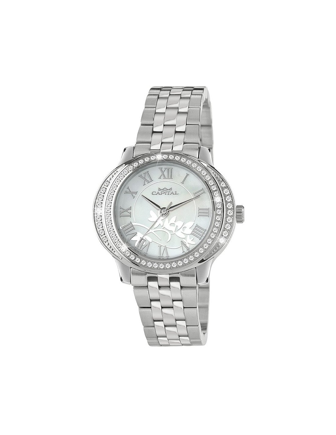 | MATERIAL COLOR AND CASE SHAPE | Steel oval case with set stones |