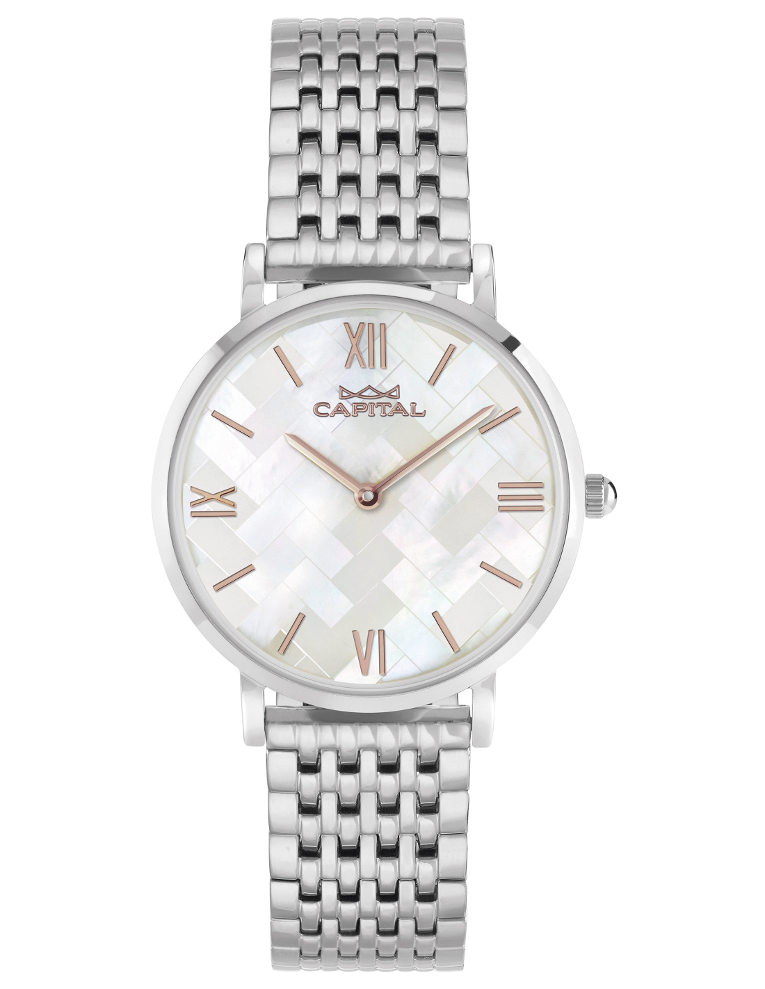 White mother of pearl with roman numbers and rose indexes