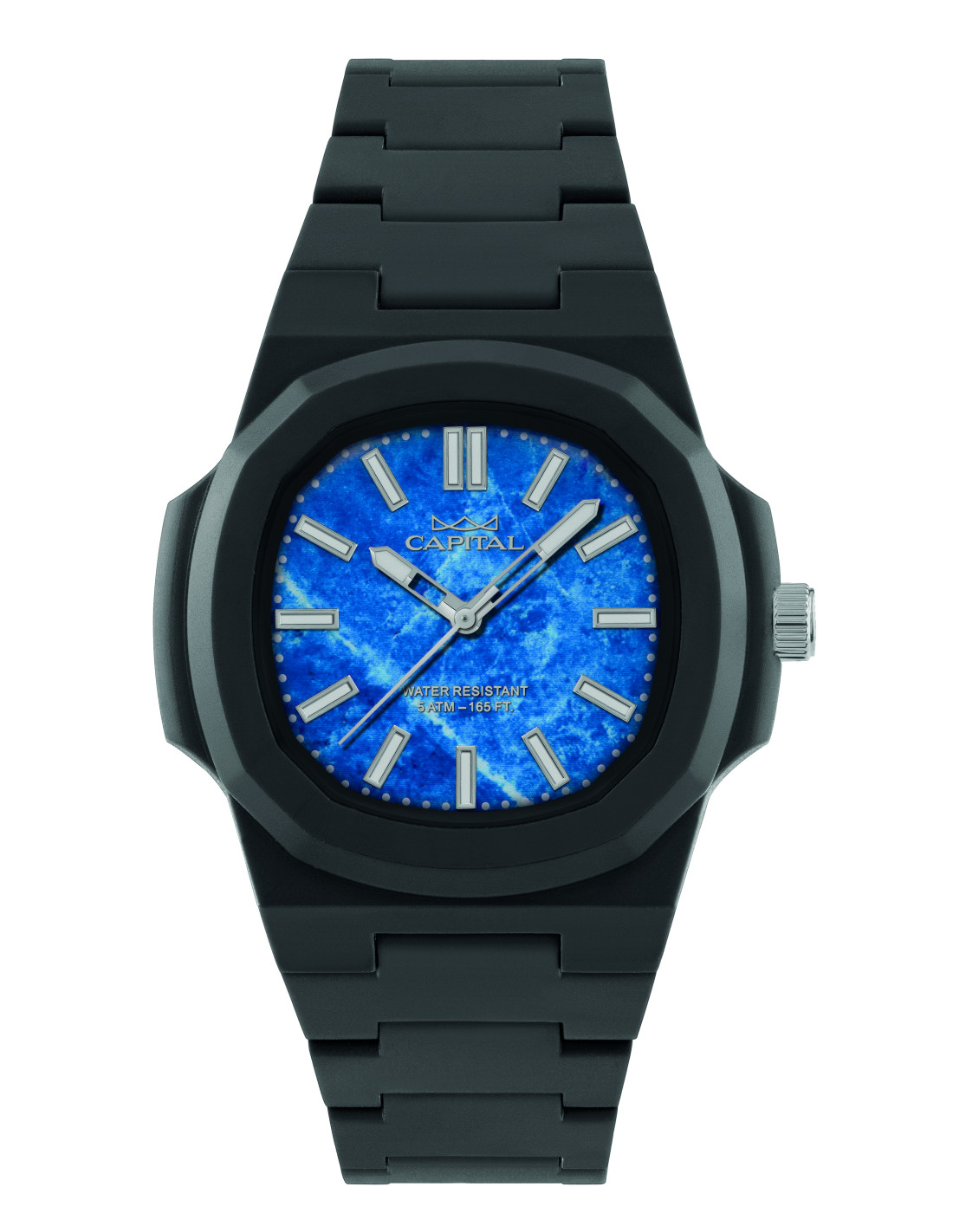 Orologio Capital in policarbonato con movimento Miyota, cassa da 43 mm e impermeabilità 5 ATM: leggero, resistente e perfetto per uno stile sportivo quotidiano.