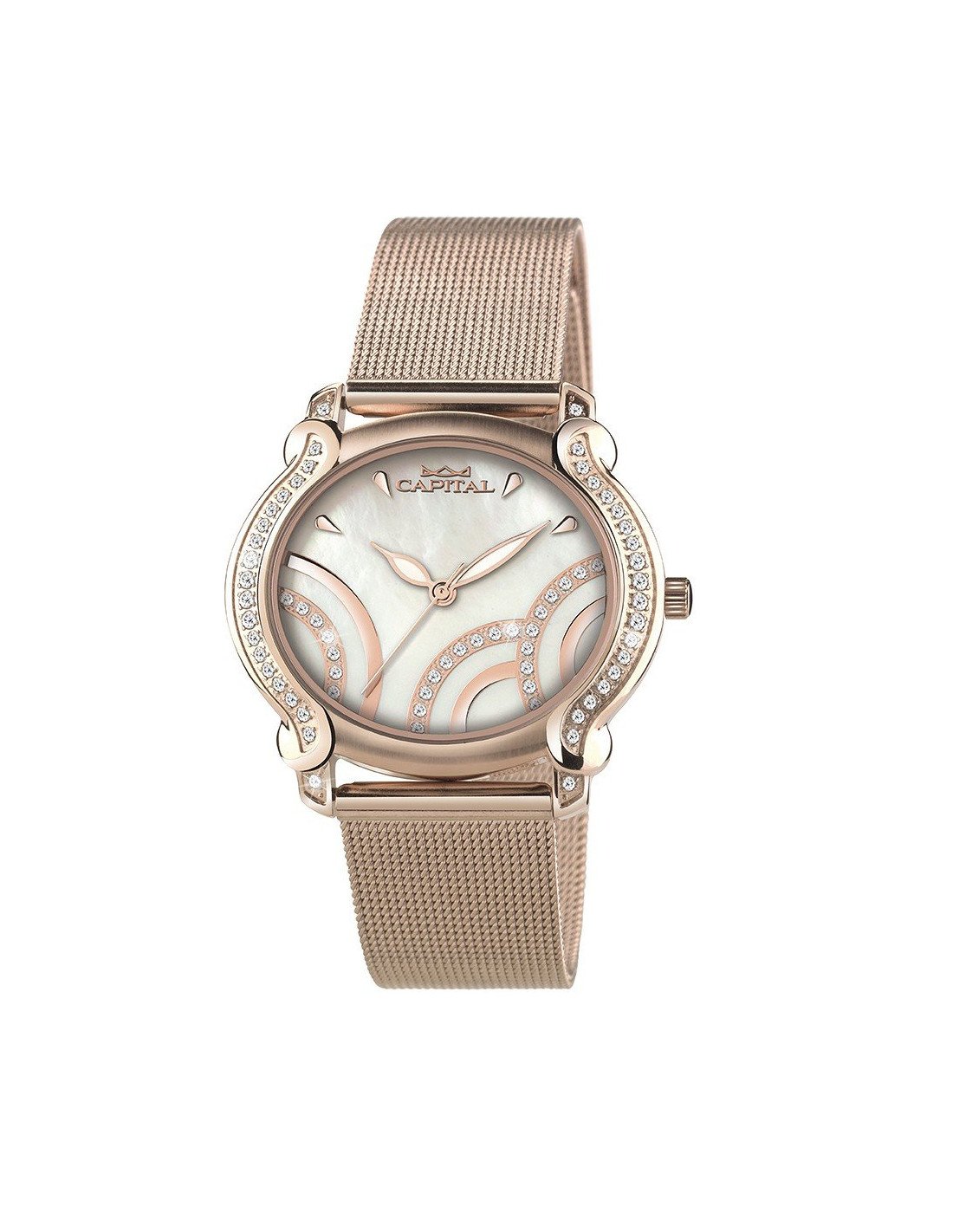 Cassa in acciaio di forma ovale con pietre e placcatura IP Gold Rose