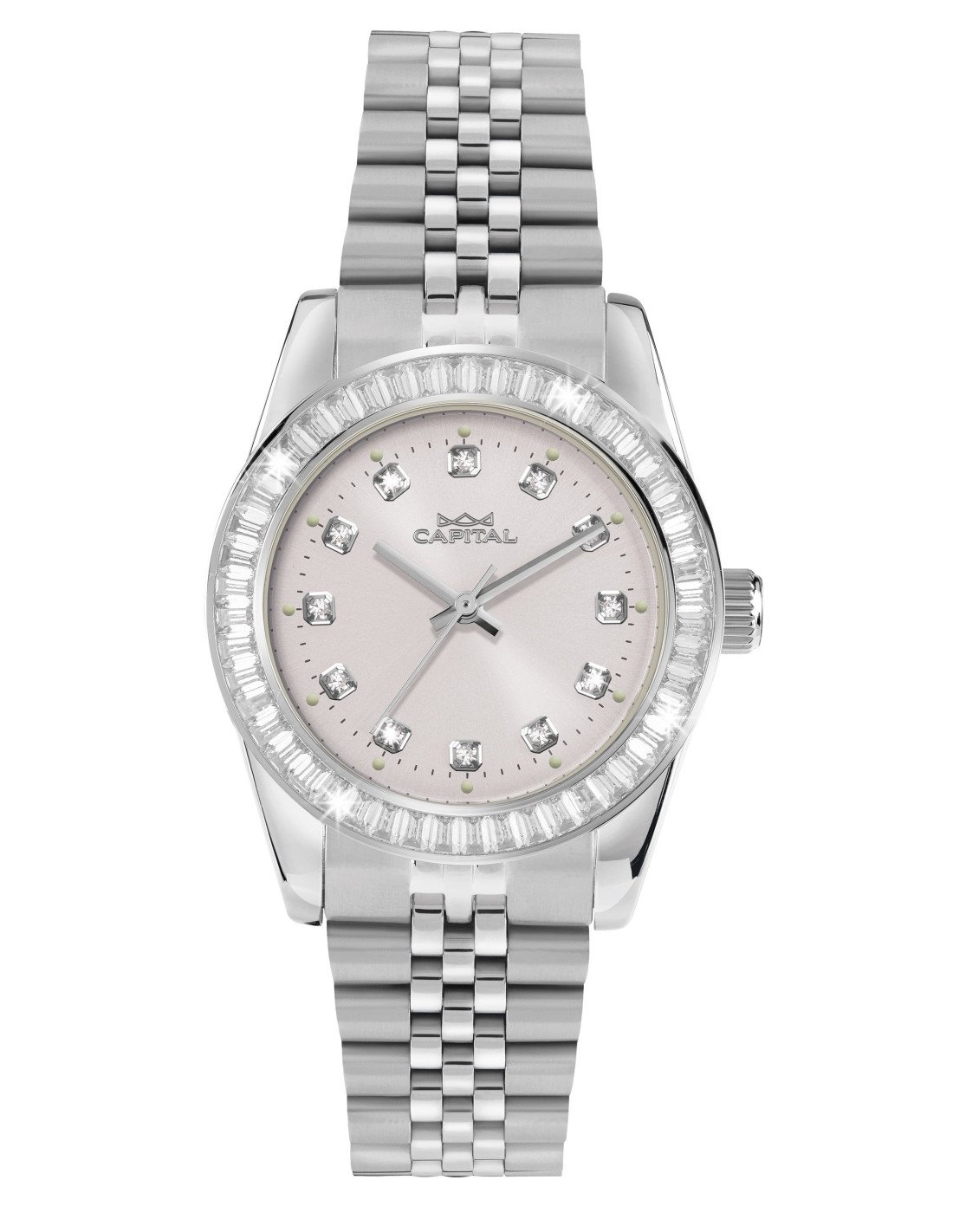 Il quadrante cipria Sunray con pietre cattura la luce con i suoi riflessi scintillanti, creando un gioco di luminosità irresistibile. Un vero e proprio punto focale che cattura l'attenzione e non lascia indifferenti.
