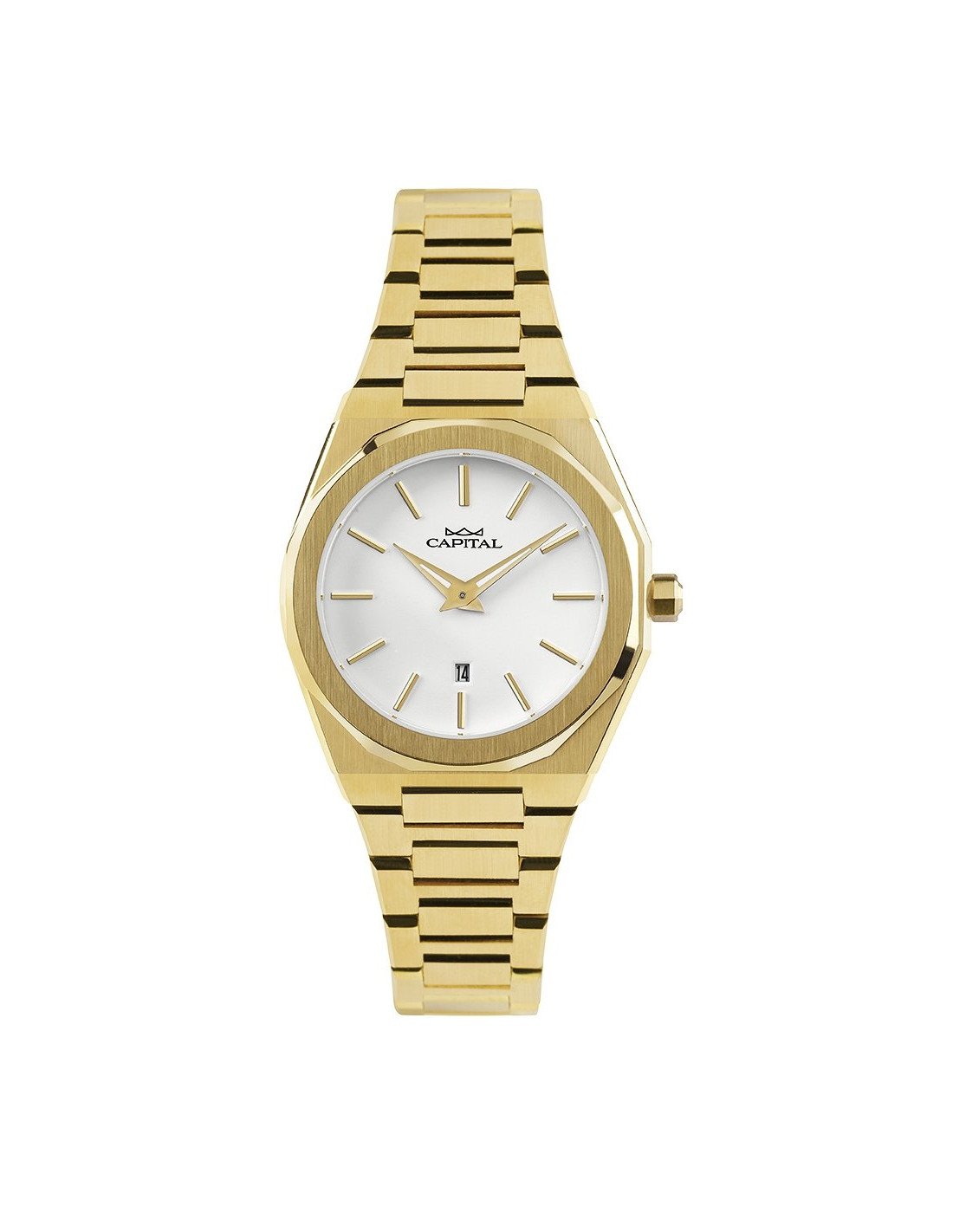 Cassa in acciaio con placcatura dorata di forma ottagonale con ghiera liscia