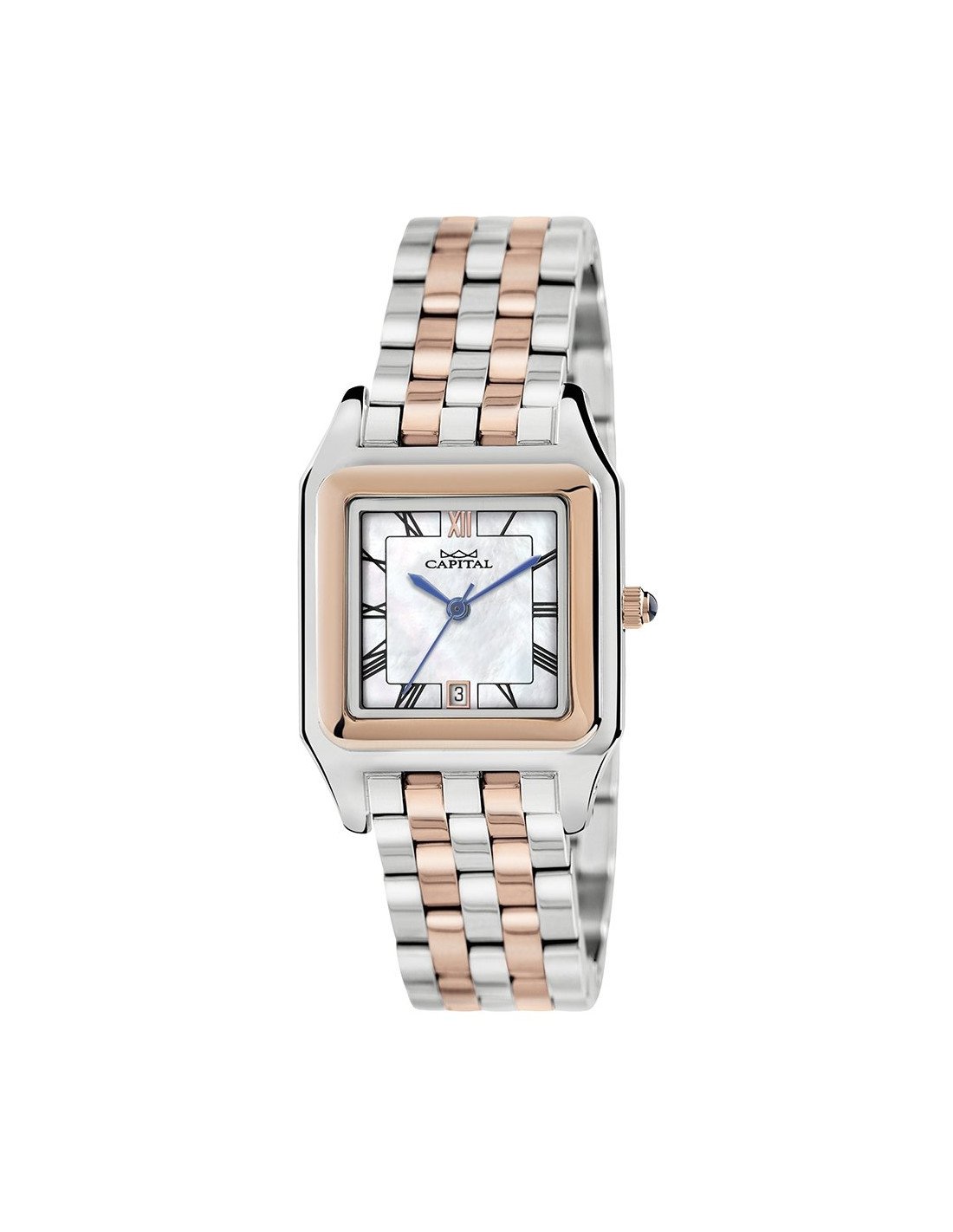 Elegante e raffinato: la forma rettangolare conferisce all'orologio un'estetica più formale e sofisticata, rendendolo perfetto per occasioni speciali o per chi apprezza uno stile classico e senza tempo. Il quadrante madreperla dona un'allure classica.